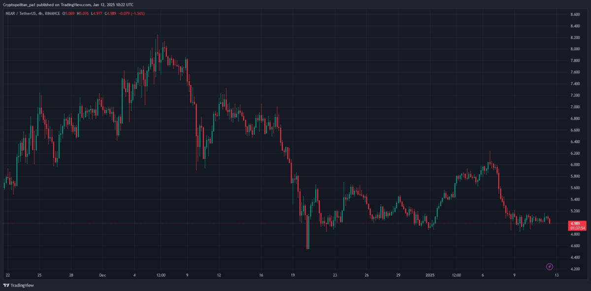 NEAR Protocol price analysis 1-day chart: NEAR falls below $5.00
