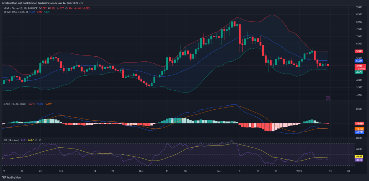 NEAR price rose rapidly to the $7.500 mark. However, the bulls failed to secure a foothold above $5.00, and the price has come crashing down in the last ten days. Now, the price hovers around $4.90 as either side struggles for a breakout.