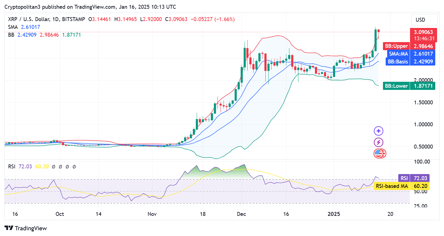 On January 16, 2025, XRP price analysis revealed a declining trend for the currency. Coin value has depreciated to $3.090 in the last 24 hours. Side by side, the cryptocurrency received up to 9.62% recovery from the previous close. The upswing remained intense in the early hours; however, currently the bears are in the lead.