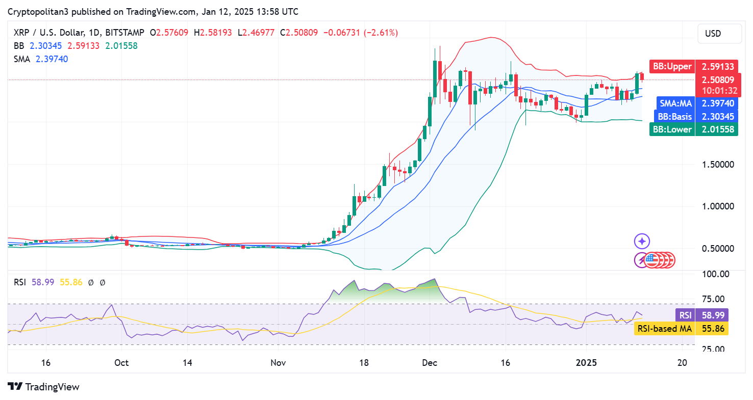 On January 12, 2025, XRP price analysis revealed a decreasing market trend for the cryptocurrency. Coin value has dropped down to a $2.508 low over the past 24 hours. Side by side, the cryptocurrency gained up to 4.79 percent of value during the day. Although a strong bullish wave was recorded earlier, today the bears secured the leading end.